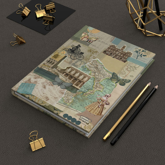 Vintage Hardcover Journal Matte- Travel Diaries Green Colors